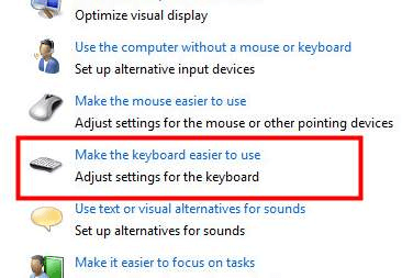 - Navigate to Ease of Access > Ease of Access Center > Make the keyboard easier to use.