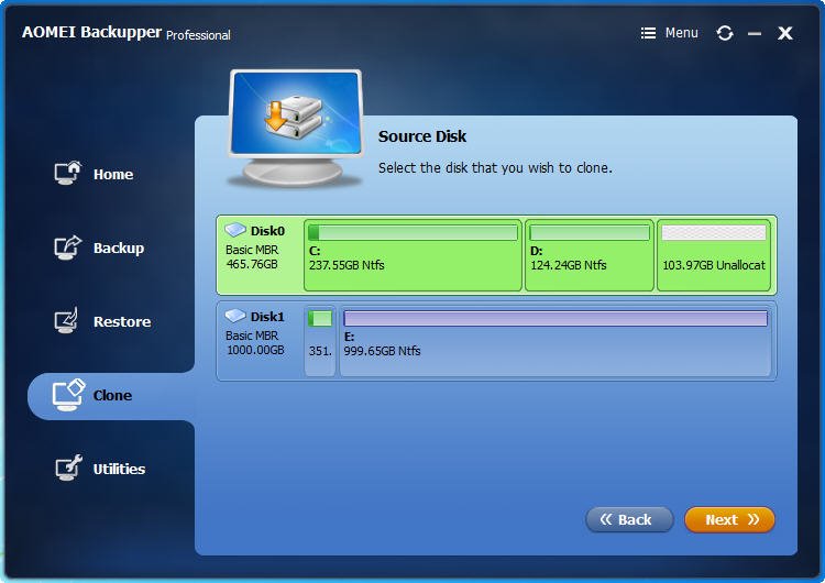 Partition Clone: It makes it easier to copy a specific partition, like D: drive, E: drive, and so forth.
