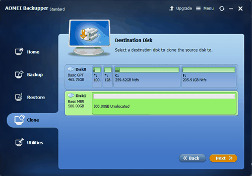 Note: The Professional edition of AOMEI Backupper supports cloning data disk and system disk, from MBR to MBR, MBR to GPT, GPT to GPT and GPT to GPT.