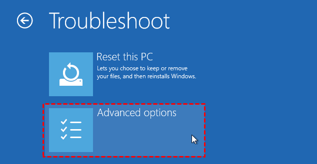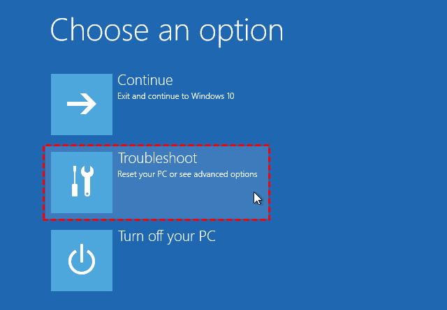- It will take you to an options screen. Select Troubleshoot to access the advanced tools.