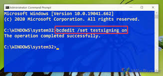 - Save the BIOS settings and exit. Now you can run the bcdedit /set testsigning on command from the Command Prompt.
