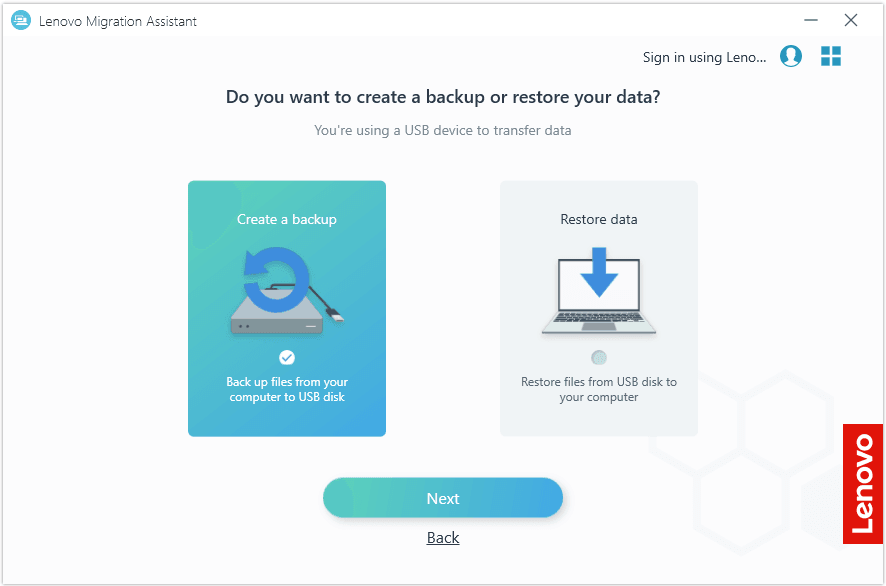 Step 3. The Lenovo Migration Assistant software will start to detect the USB drive, and you can choose the files that need to be migrated to create a backup.