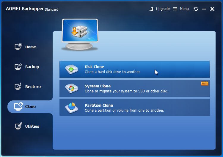 Please download the AOMEI Backupper Professional 30-day free trial to have a try (Clone features in the free trial can only be demonstrated, upgrade to AOMEI Backupper Professional to use if you prefer).