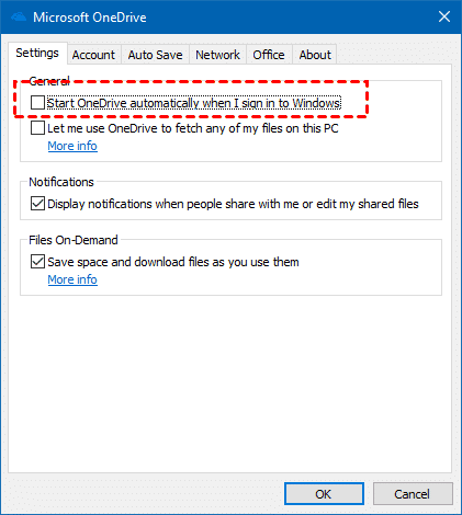 - Under the Settings tab, check the Start OneDrive automatically when I sign in to Windows, then click OK.