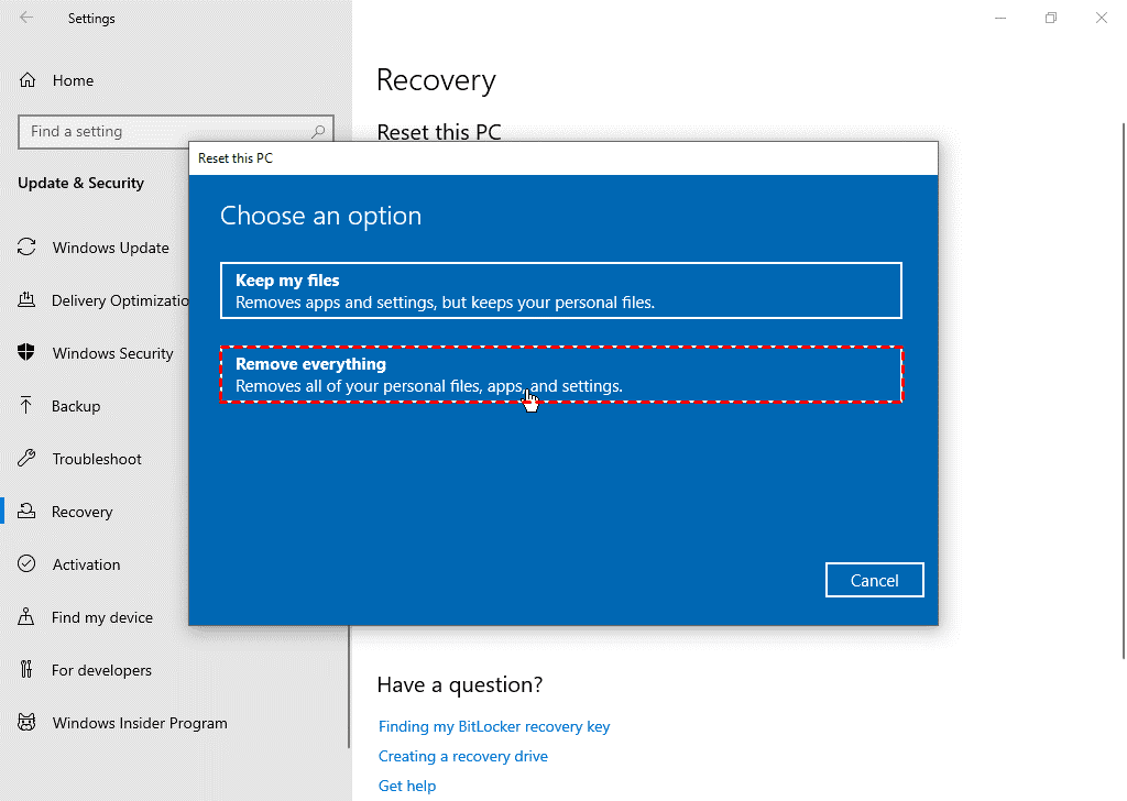 Step 4. Choose Remove everything to erase all settings and files or Keep My Files to maintain essential personal files.