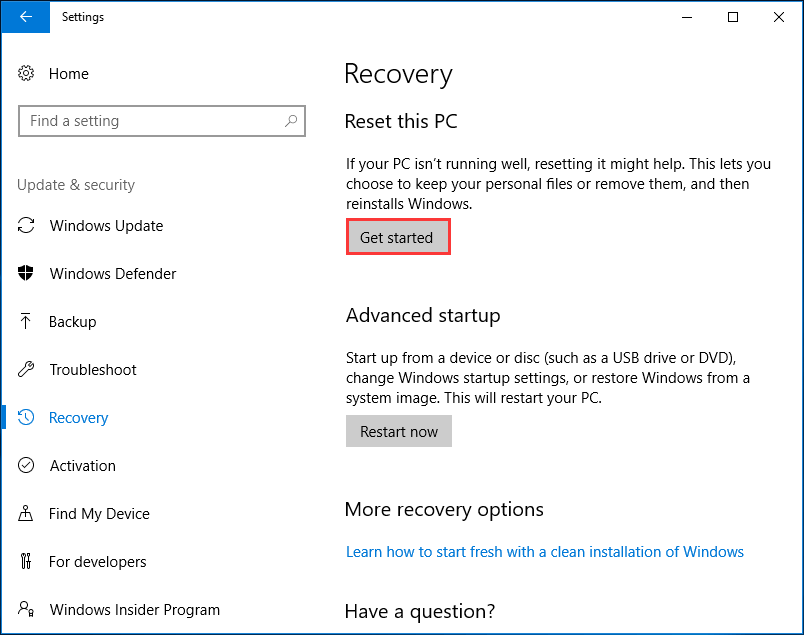 Way 2. Reinstalling Windows 10 Through the Settings Menu