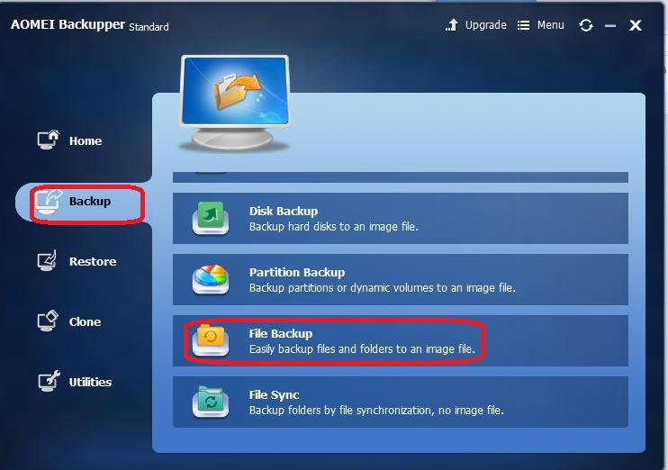 Step1. Download AOMEI Backupper, install and launch it. Click File Backup under the Backup option.