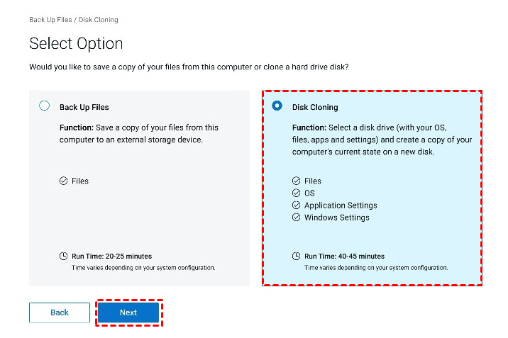 Step 3. Click Back Up Files / Disk Cloning. Then select Disk Cloning and click Next.
