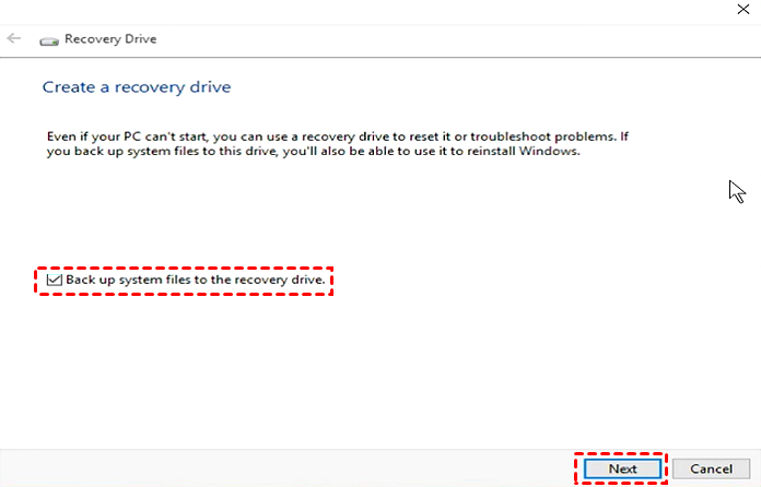 Step 3. Check the box next to "Back up system files to the recovery drive," then click "Next."