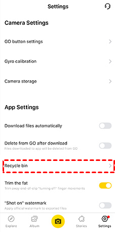 Way 2. Recover INSV Files from Insta360 GO App’s Recycle Bin