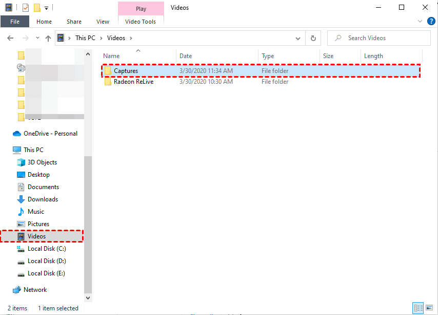 The captures recorded on a Windows device will be stored in the Videos folder under File Explorer by default. If you haven’t changed the location, just open File Explorer > Videos > Captures > view and check your clips.