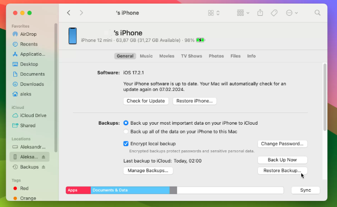 Step 1. Launch Finder and connect your iPhone to your Mac.