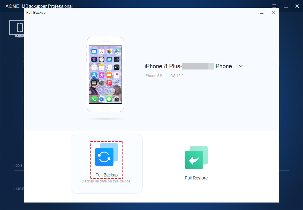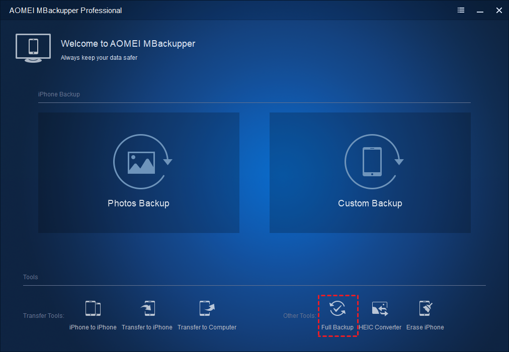 AOMEI FoneBackup freeware helps to keep your data safe by one-click backup and restore and supports transferring data to PC or new iPhone.