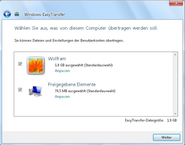 Benutzerfall: Daten von altem PC auf neuen übertragen