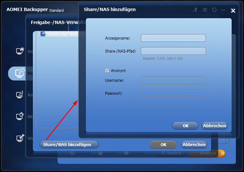 Schritt 3. Geben Sie in diesem Fenster den NAS-Pfad ein, um Ihre Sicherungsdateien zu speichern. Klicken Sie dann auf OK, um weiterzugehen.