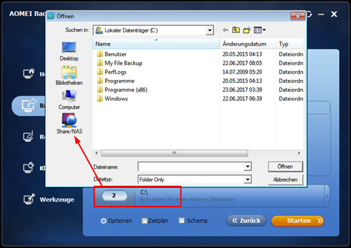 - Sie können eine Datensicherung auf externe Festplatte oder auf lokale Festplatte durchführen. Sie können auch auf verschiedenen NAS-Geräten, wie Synology, QNAP und WD My Cloud, sichern.