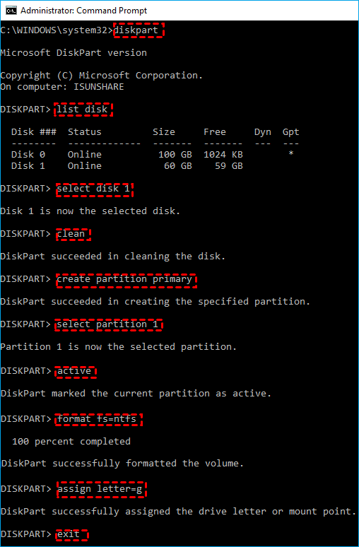 Schritt 2. Geben Sie im Fenster der Eingabeaufforderung die folgenden Befehle nacheinander ein und drücken Sie die Eingabetaste, um sie auszuführen.