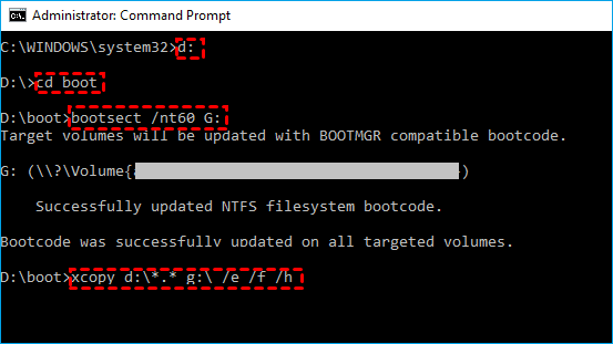 Schritt 4. Brennen Sie die Installationsdateien mit den folgenden Befehlen auf die externe Festplatte.
