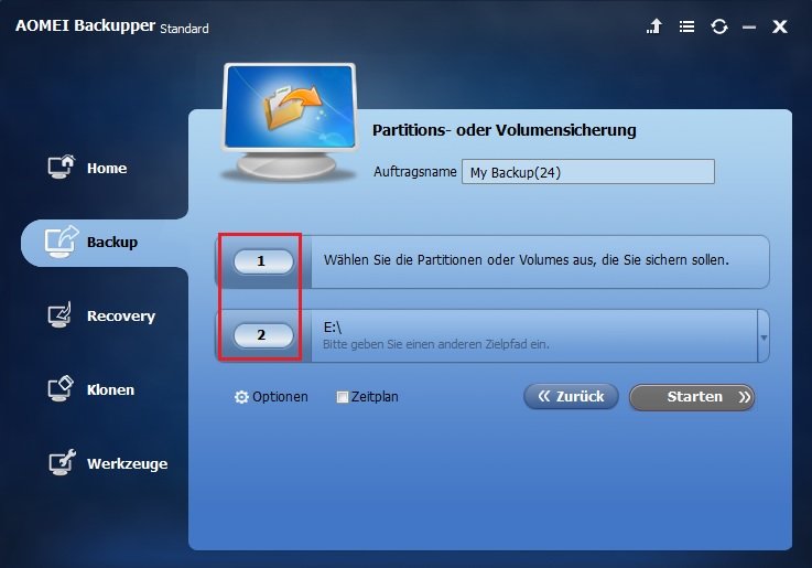 - Sicherungsspeicher: Lokale Festplatte, externe Festplatte, USB-Flash-Laufwerk, NAS, Netzwerkfreigabe, Cloud-Laufwerk, usw.
