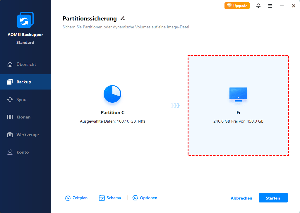 In diesem Artikel erfahren Sie, wie Sie mit der kostenlosen Drittanbieter-Software AOMEI Backupper ein Backup auf externe Festplatte erstellen können. Neben der Anleitung werden wir auch die Bedeutung der Datensicherung auf externe Festplatte und einige andere Informationen erläutern.