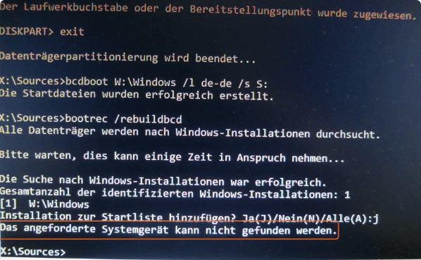 BCDEdit: Der Speicher für die Startkonfigurationsdaten konnte nicht geöffnet werden