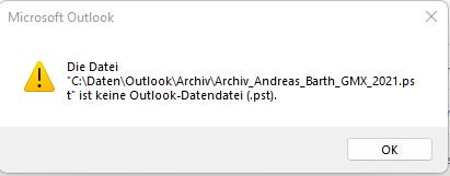 Die Datei ist keine Outlook-Datendatei - wie zu beheben?