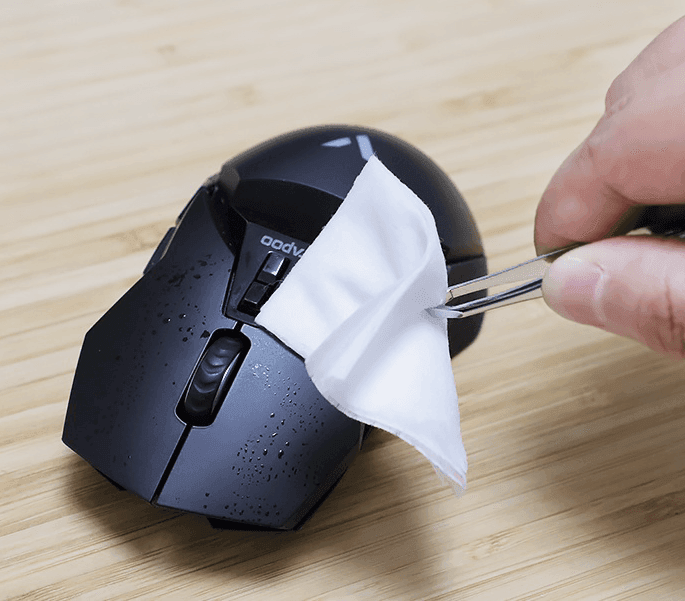 2. Überprüfen Sie den linken Mausknopf auf Schmutzansammlungen, die seine ordnungsgemäße Funktion beeinträchtigen können. Wenn möglich, reinigen Sie die linke Seite des Mausklicks mit einem in Alkohol getränkten Desinfektionswattebausch oder Druckluft.