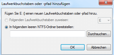 Schritt 3. Wählen Sie „Hinzufügen...“ > Klicken Sie der Reihe nach auf „In folgendem leeren NTFS-Ordner bereitstellen“ > „Durchsuchen“ Sie zu Ihrem C: > „Neuer Ordner...“ > Benennen Sie den Ordner „DB Mount“, dann klicken Sie auf„OK“.