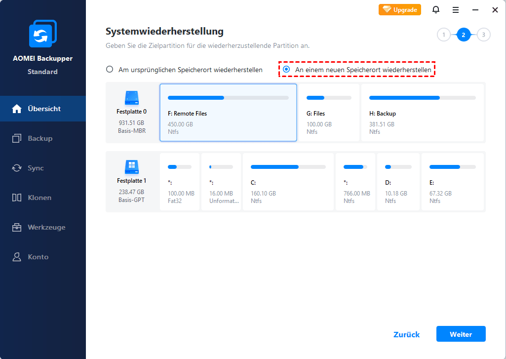 Für die Installation von Systemen empfehle ich Ihnen, Ihr Windows-System mit AOMEI Backupper Standard von einem anderen PC zu sichern, bevor Sie es auf Ihrem Laptop wiederherstellen. Das hat den Vorteil, dass Sie ein Windows-System haben können, ohne Geld auszugeben.