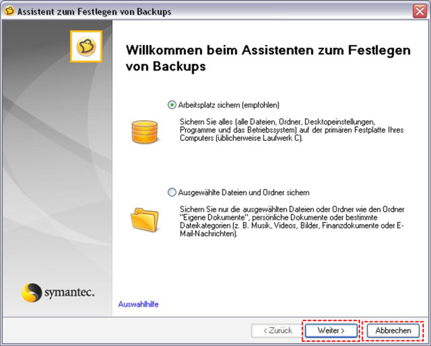 3. Assistent zum Festlegen von Backups wird angezeigt.