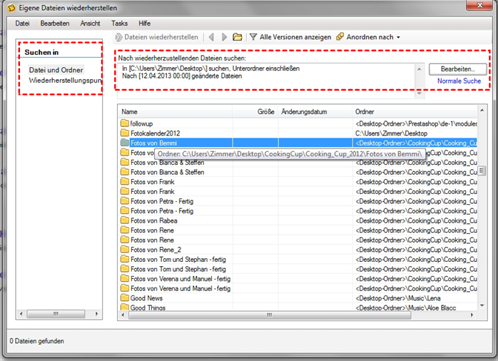 2. Unabhängig von Ihrer Wahl können Sie den gewünschten Dateienamen in das Feld unter „Nach wiederherstellenden Dateien suchen“ und auf „Bearbeiten“ klicken, um ihn zu suchen.