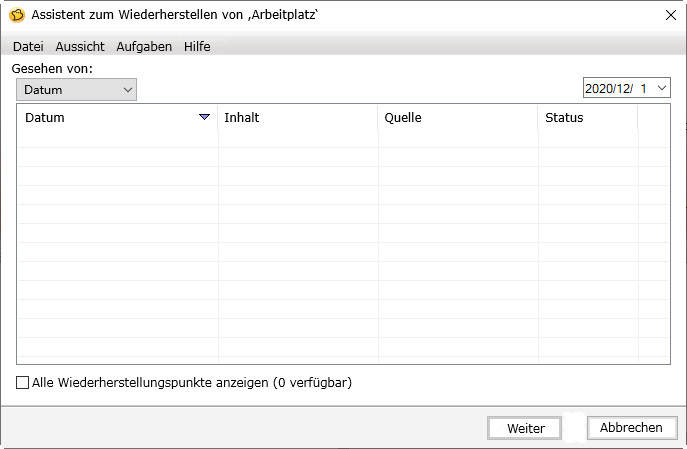 Assistent zum Wiederherstellen von ,Arbeitsplatz':