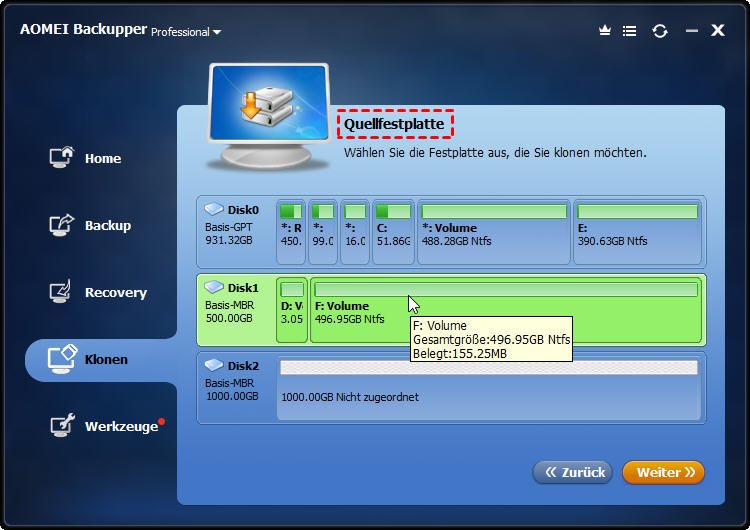 Wenn Sie über einen Windows-basierten Desktop verfügen, ist Festplattenklon der beste Weg, um ein Upgrade durchzuführen. Verbinden Sie einfach beide Festplatten mit Ihrem PC und beginnen Sie mit dem Klonen. Sie können die aktualisierte Festplatte nach Fertigstellung direkt wieder auf PS4 installieren. Laden Sie die Software einfach herunter, um Ihre PS4 Festplatte ohne Datenverlust zu tauschen.