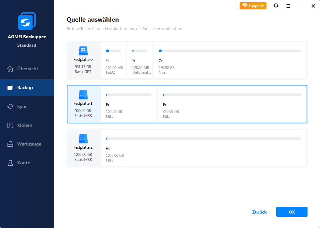 1. Wählen Sie unter der Registerkarte Backup die Option Festplattensicherung.
