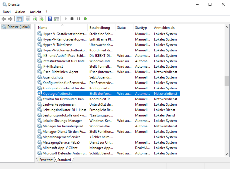 Schritt 2. Suchen Sie den Dienst Kryptografiedienste und prüfen Sie den aktuellen Status.