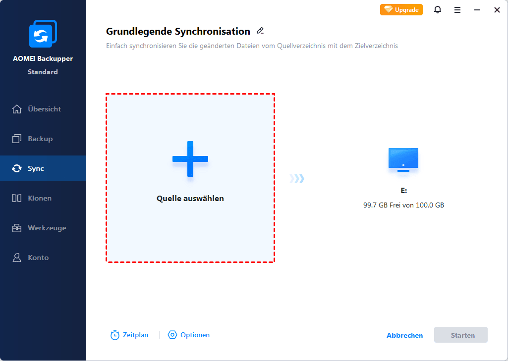 Hier werde ich die grundlegende Synchronisation-Funktion verwenden, um Ihnen zu zeigen, wie Sie Dateien von SSD auf HDD verschieben können, da dies einfacher ist und Sie keine Daten aus einem Backup-Image extrahieren müssen.