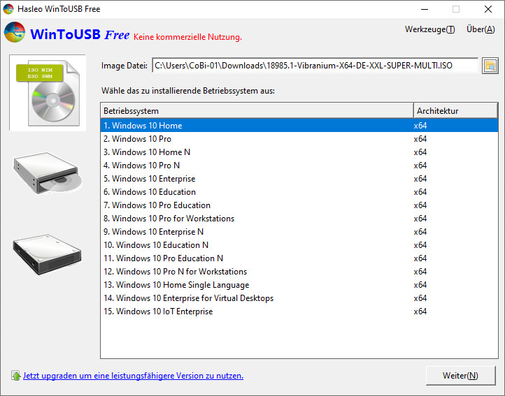 Methode 2. Windows 10 Live USB-Stick mit WinToUSB erstellen