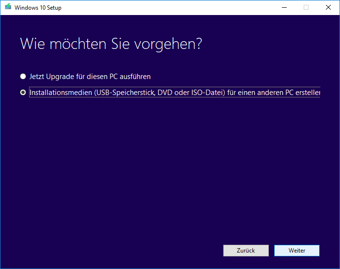 Sie können die folgenden Schritte befolgen, um mit dem Media Creation Tool ein bootfähiges Medium zu erstellen und Windows von diesem Medium neu zu installieren. Übrigens unterstützt das Tool nur die einzelne Installation von Betriebssystemen.