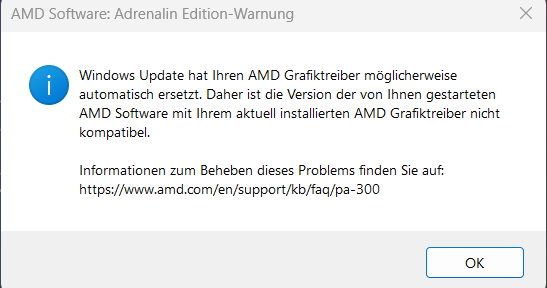 Fehler: Windows Update hat Ihren AMD-Grafiktreiber möglicherweise automatisch ersetzt