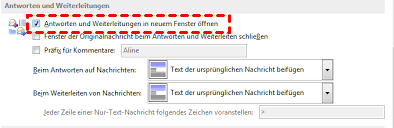 2. Wenn Sie zum Abschnitt „Antworten und Weiterleitungen“ scrollen, können Sie die Option „Antworten und Weiterleitungen in neuem Fenster öffnen“ markieren.
