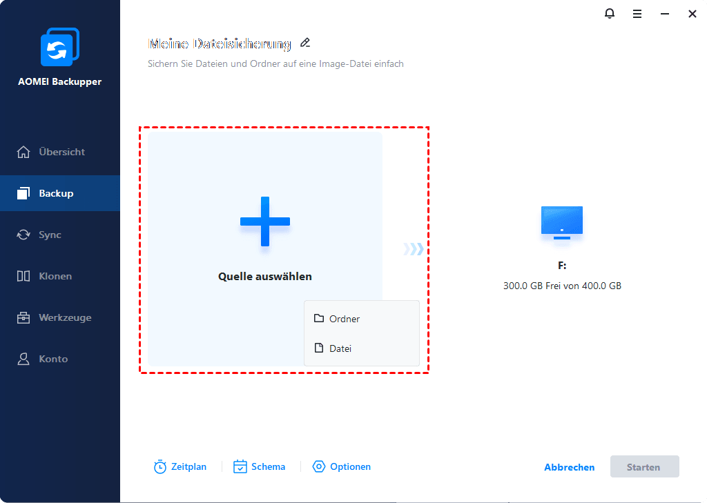 ✨ Diese Software unterstützt nicht nur die Datensicherung auf externen Festplatten, sondern auch auf Cloud-Laufwerken wie Google Drive, Dropbox, OneDrive, Netzlaufwerken, NAS usw.