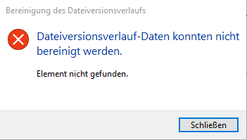 Fehler bei der Bereinigung des Dateiversionsverlaufs: Element nicht gefunden