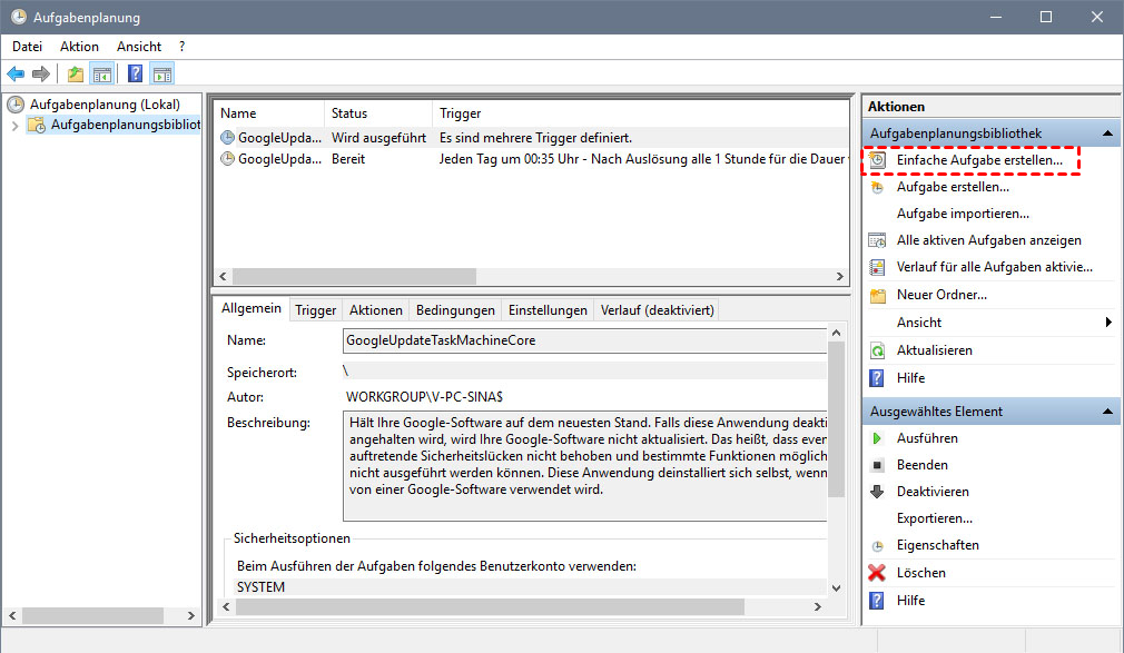 Bestätigen Sie die Informationen und klicken Sie auf Fertig, um den Vorgang abzuschließen. Anschließend können Sie die geplante Aufgabe in der Aufgabenplanungsbibliothek finden und sie jederzeit ausführen oder löschen.