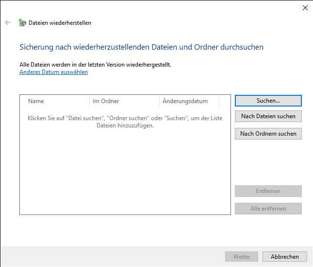 Sie können das in Windows integrierte Tool Sichern und Wiederherstellen (Windows 7) verwenden, um die verlorenen Dateien wiederherzustellen.