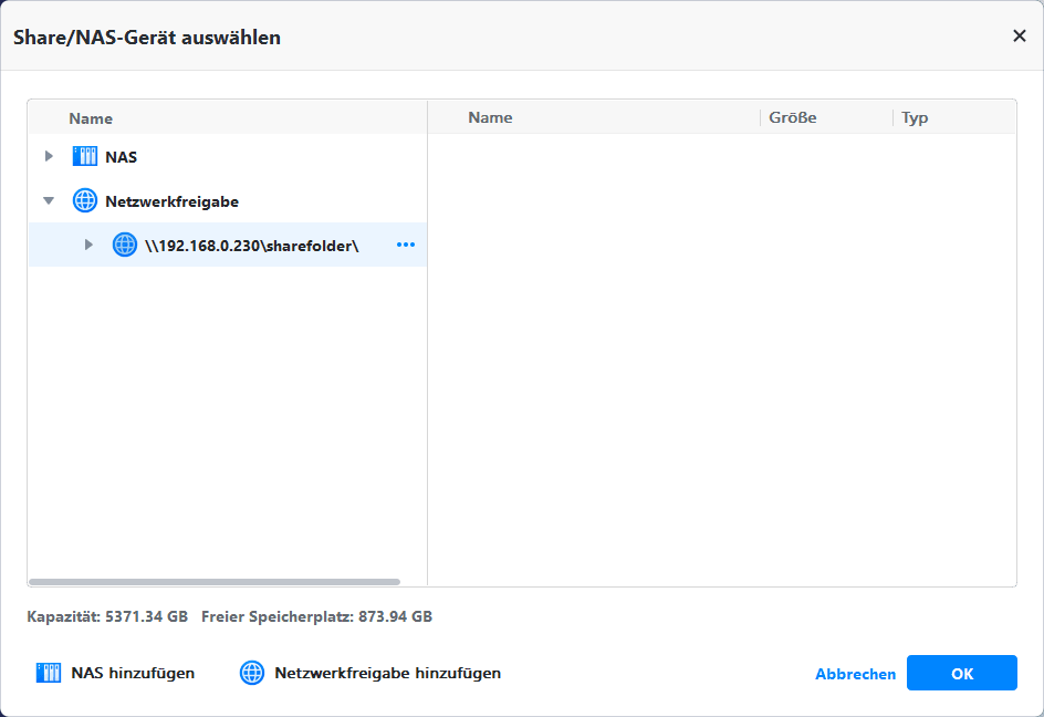 ✹ Es ist für alle Windows-PCs geeignet und unterstützt alle NAS, ohne Markeneinschränkungen. Es hilft Ihnen bei der Datenwiederherstellung von Synology, Seagate NAS-Wiederherstellung oder QNAP Notfallwiederherstellung. ✹ Es ermöglicht Ihnen die Sicherung von Daten auf NAS mit nur wenigen Klicks. Im Falle eines Unfalls können Sie schnell eine Datenwiederherstellung durchführen, solange das NAS angeschlossen ist. Sie können NAS-Daten auch auf anderen Speichergeräten sichern, z. B. auf Cloud-Laufwerken, USB, lokalen PCs usw.