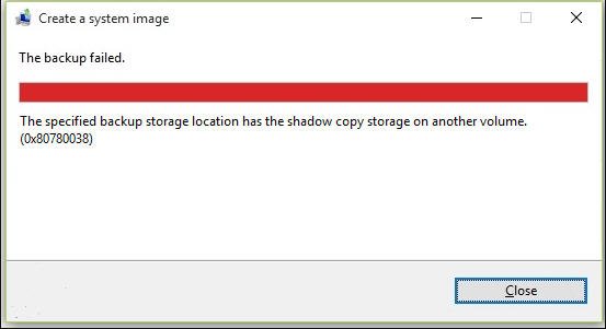1. Die Sicherung ist fehlgeschlagen. Der angegebene Sicherungsspeicherort hat den Schattenkopiespeicher auf einem anderen Volume (0×80780038).