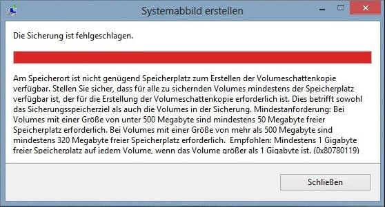 Systemabbild erstellen: Die Sicherung ist fehlgeschlagen - wie zu beheben?