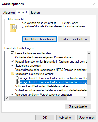 Lösung 4: Versteckte Datei überprüfen