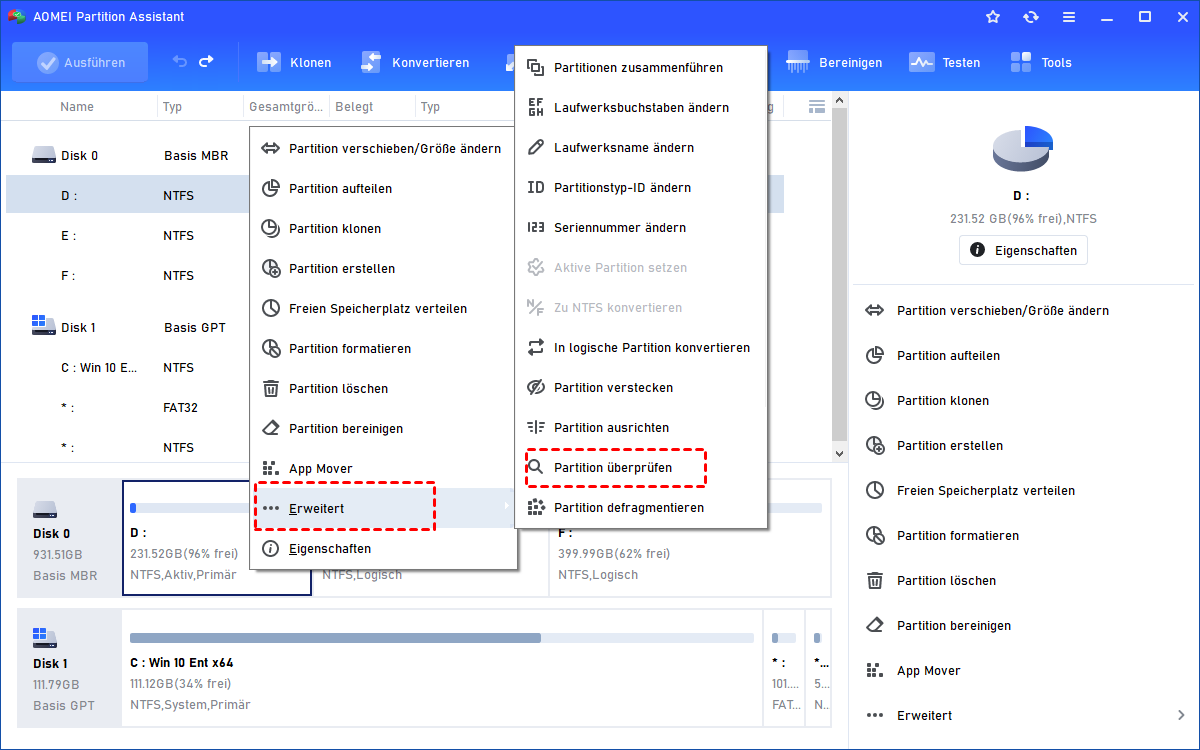 Aber es ist schwierig für Nicht-Techniker, CMD einzugeben. Wenn Sie das auch stört, können Sie die folgende kostenlose Partitionsmanager-Software verwenden, um erkannte Fehler einfach zu überprüfen und zu reparieren.