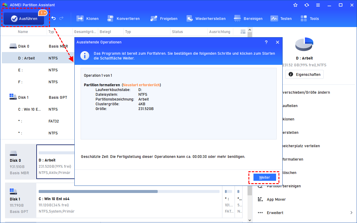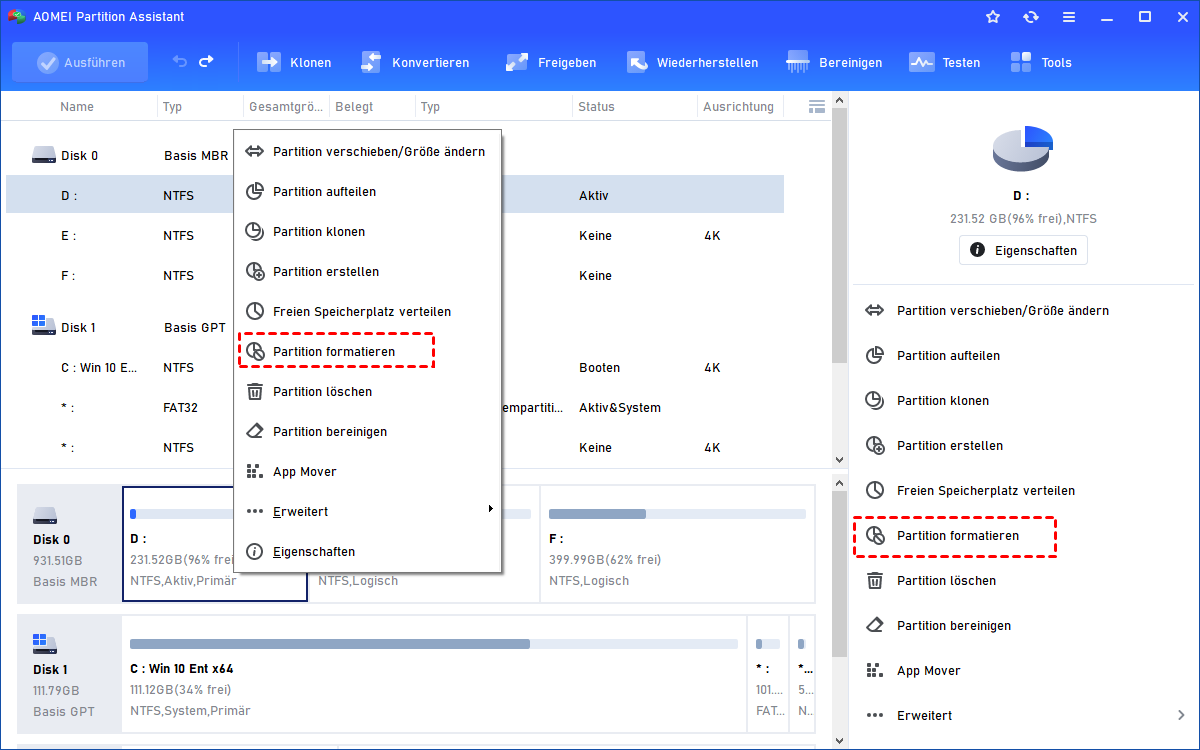 Damit es mit Ihrem Windows-Betriebssystem funktioniert, können Sie den AOMEI Partition Assistant Standard verwenden, den Sie heruntergeladen haben, um Ihr SSD-Laufwerk zu formatieren und sein Dateisystem in ein geeignetes zu ändern.
